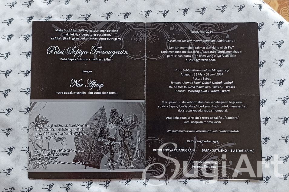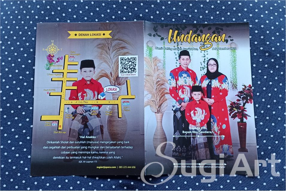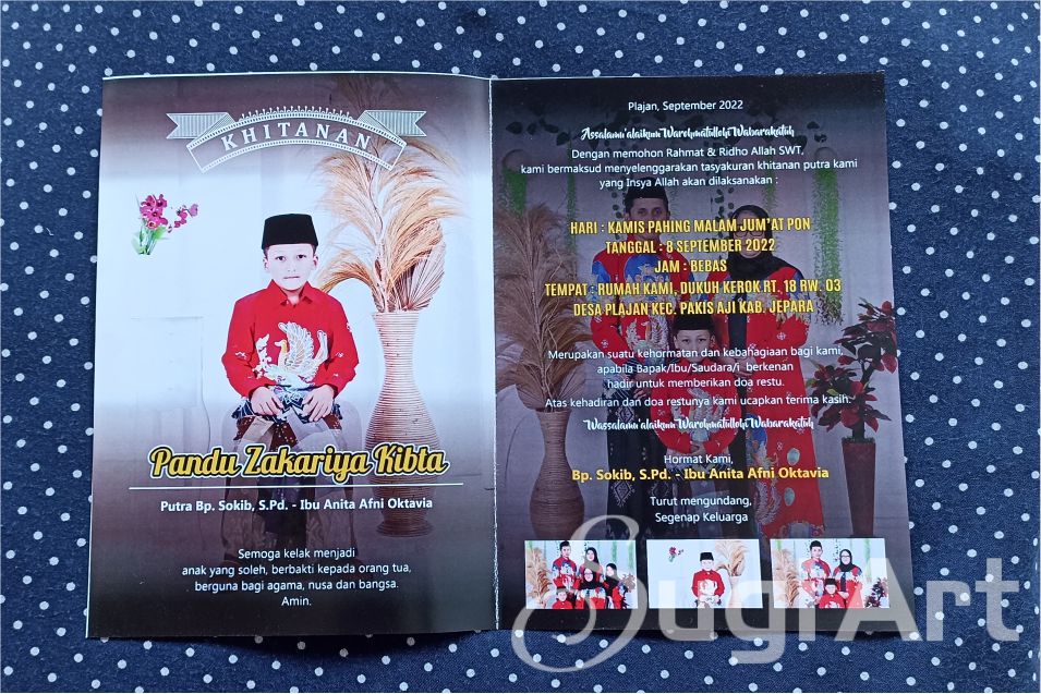 Bagi yang akan menyelenggaran acara tasyakuran pernikahan ataupun tasyakuran khitanan putra anda. Percayakan kepada kami untuk membuat UNDANGAN, di jamin pasti PUAS. Karena hasil memuaskan + harganya MURAH tapi Tidak Murahan. Kami menyedian mulai dari kelas rendah sampai kelas menengah ke atas. Berikut hanya beberapa contoh UNDANGAN saja. Untuk mengetahui contoh yang lain, hubungi kami langsung.